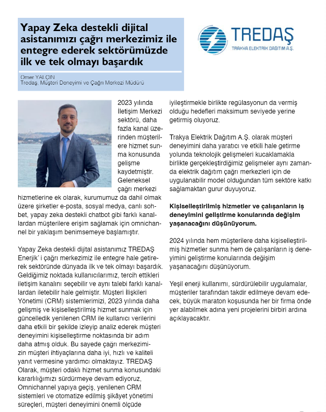 TREDAŞ Müşteri Deneyimi ve Çağrı Merkezi Müdürü Ömer YALÇIN'ın CallCenterLife Röportajı
